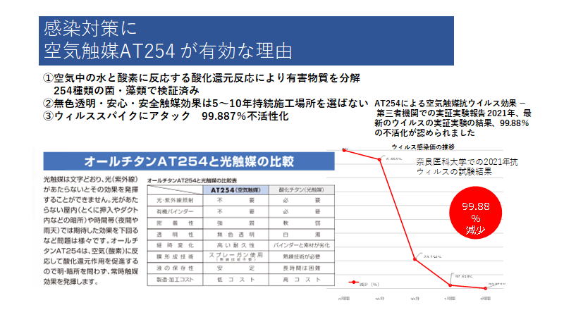 チタンコート最新スパイクウイルスの99.8%の不活性化が第3者機関により